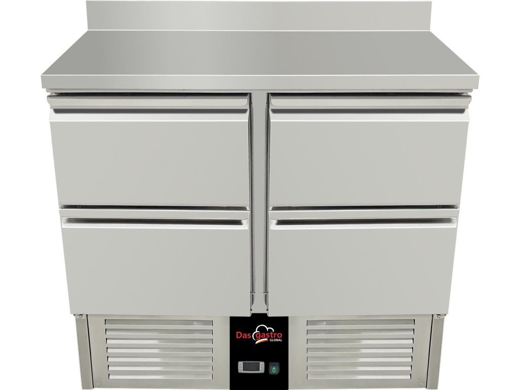 Refrigerated table 0.9 x 0.7 m - with rear upstand and 4 drawers