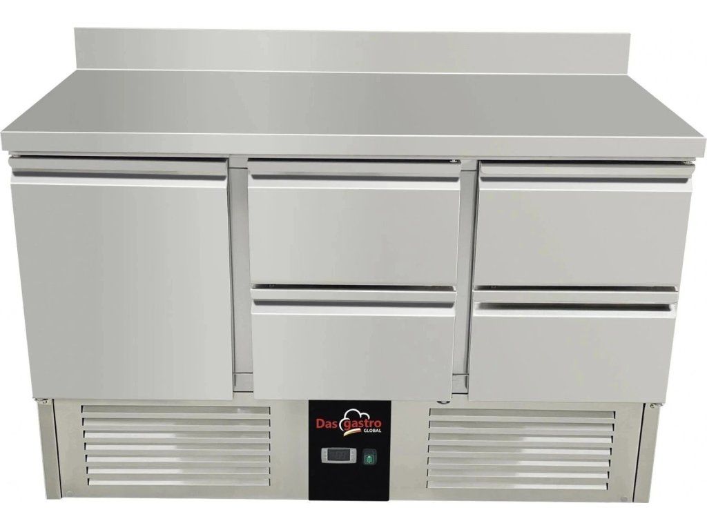 Refrigerated table / preparation table 1.37 mx 0.7 m - with 1 door and 4 drawers on the right and rear trim