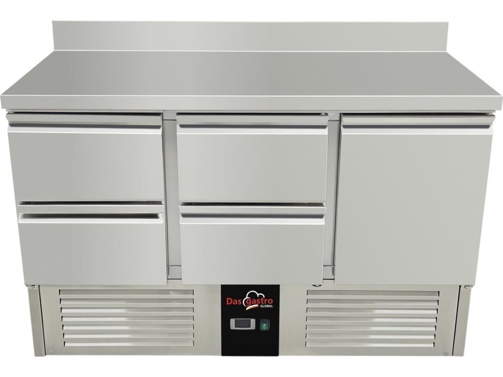 Refrigerated table / preparation table 1.37 mx 0.7 m - with 1 door and 4 drawers on the left and rear trim