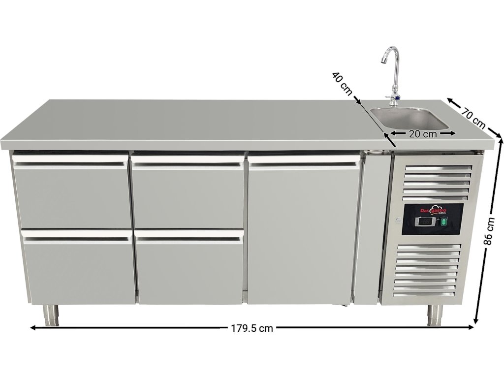 Refrigerated table with sink - 4 drawers and 1 door on the right