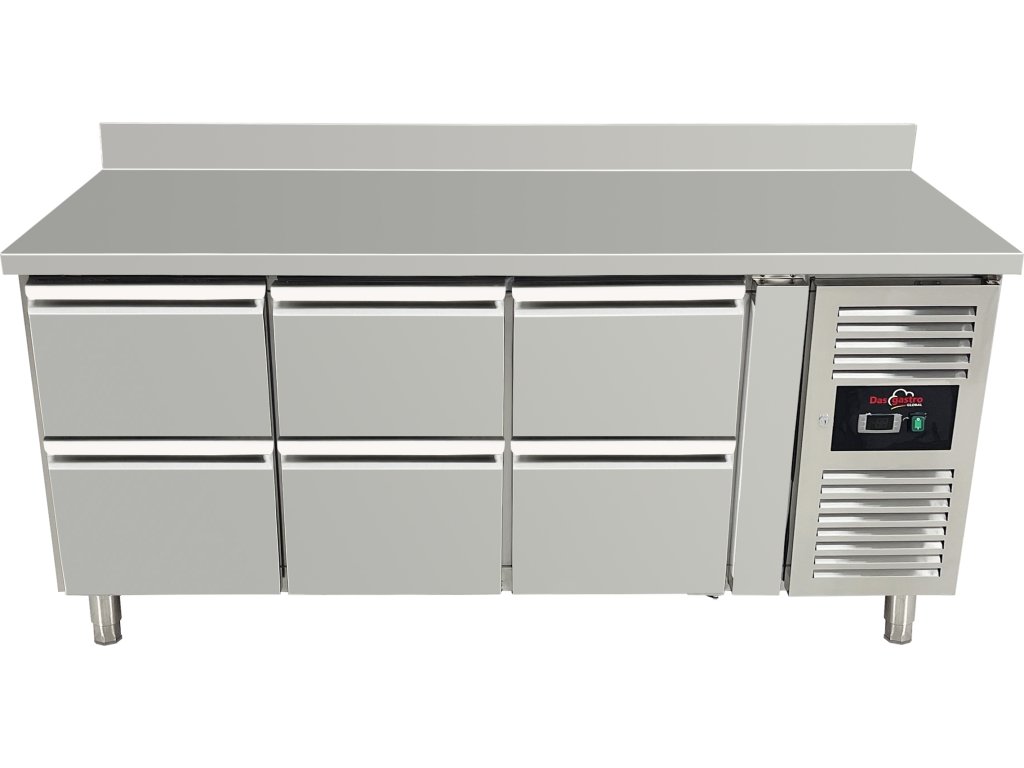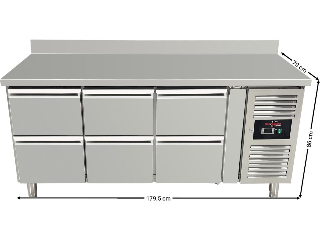 The DAS3200TNE professional refrigerated counter offers reliable performance and practical design for everyday use. Thanks to ventilated cooling and a temperature range of +2 to +8 °C, it always keeps your food at the right temperature. It is equipped with a rear edge that protects the wall from dirt and is ideal for work in the kitchen.