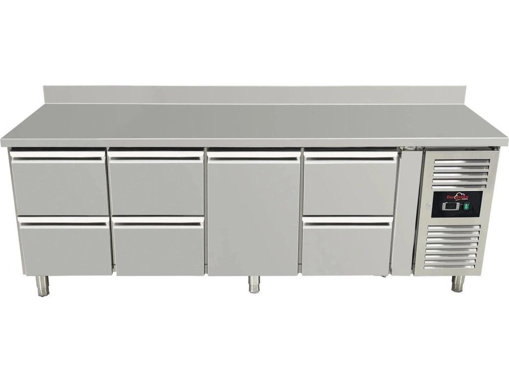 Refrigerated table with rear upstand, 6 drawers and middle door on the right