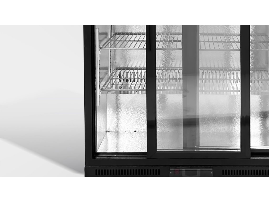 Barová lednice - 1350 x 540 x 900 mm, se 3 skleněnými dveřmi a 2 policemi - černá