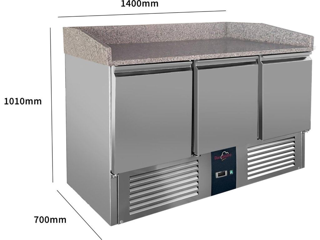 Chladící stůl na pizzu - 1,4 x 0,7 m - se 3 dvířky