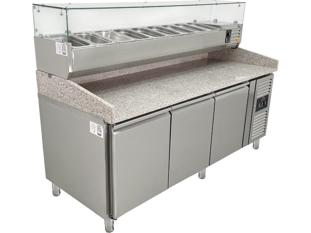 Chladící stůl na pizzu - 2015 x 800 mm - se 3 dvířky a saladetou 10 x GN 1/4