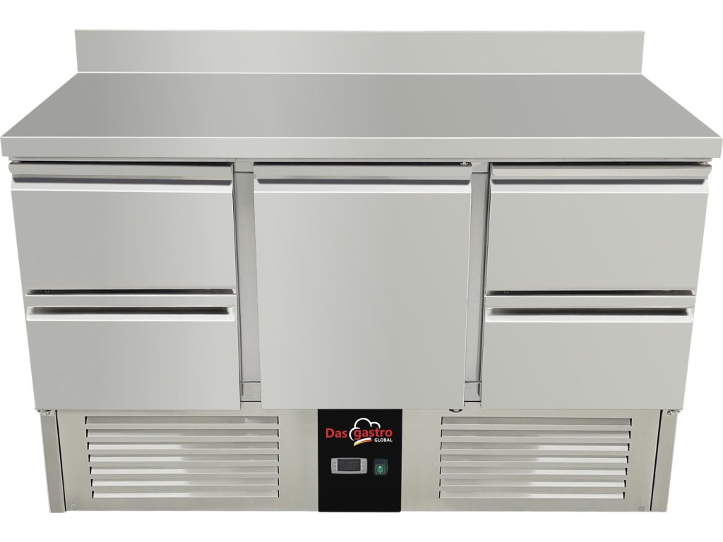Chladící stůl / přípravný stůl 1,37 mx 0,7 m - se 1 dveřmi uprostřed a 4 šuplíky