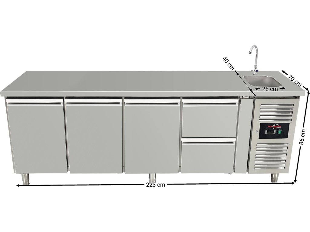 Chladicí stůl s dřezem se 3 dvířky a 2 šuplíky vpravo