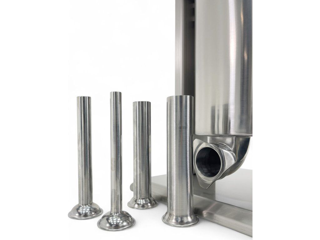 Robustní válec z potravinářské nerezové oceli AISI 304 odolává kyselinám, tukům i intenzivnímu používání. Materiál minimalizuje ulpívání masa a usnadňuje čištění po každém plnění.