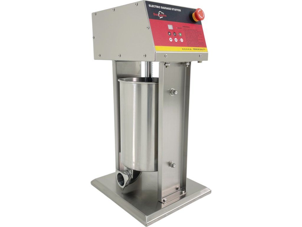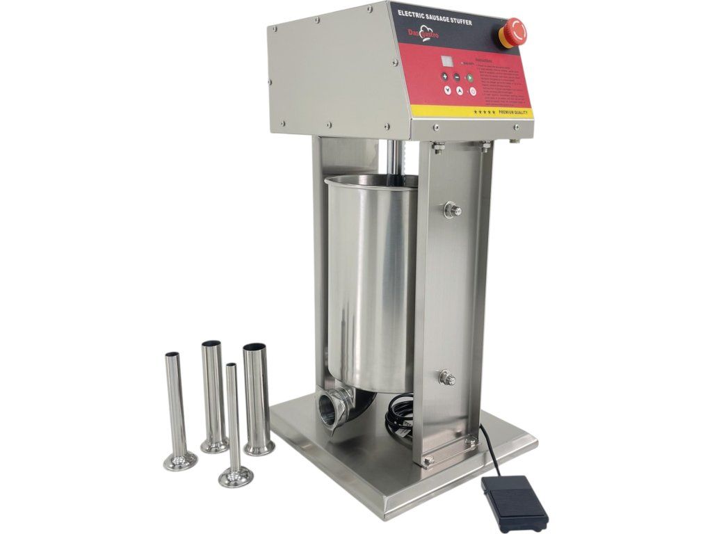 Elektrická plnička klobás s kapacitou 12 litrů určená pro rychlou a rovnoměrnou výrobu uzenin. Nerezová konstrukce AISI 304, tichý chod motoru a pohodlné nožní ovládání usnadňují práci při plnění všech typů střev. Stabilní stojící provedení a vysoká životnost dělají z tohoto modelu spolehlivé vybavení pro řeznictví, domácí výrobce i gastro provozy.