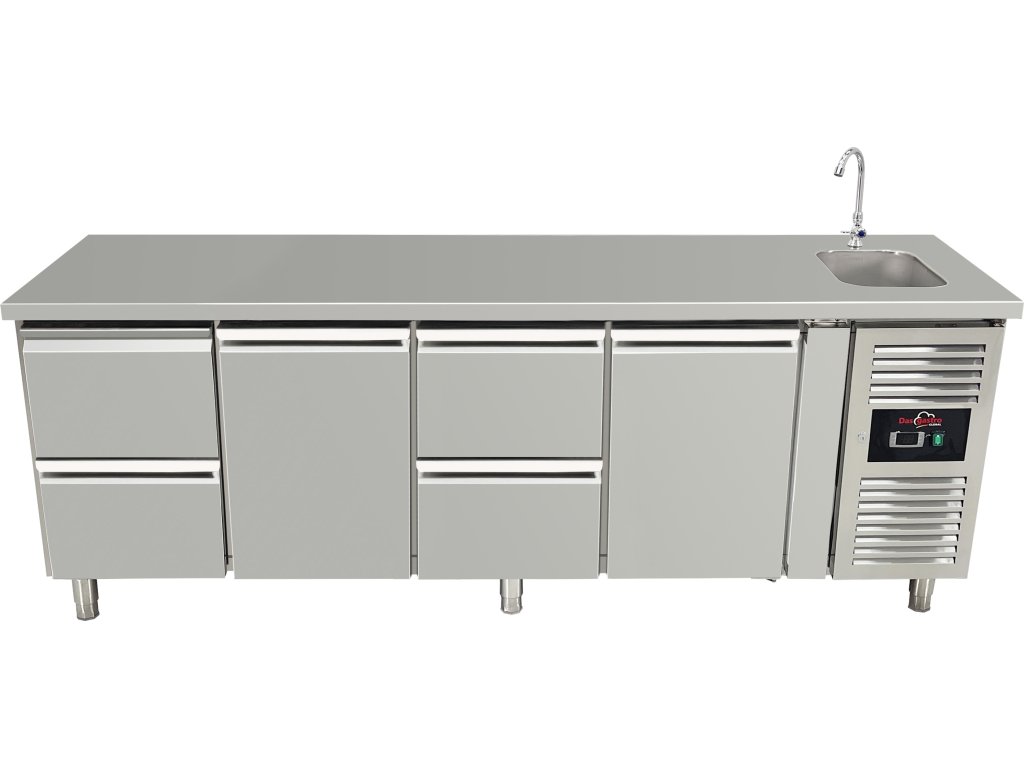 Profesionální mrazicí stůl s integrovaným dřezem a extra kapacitou