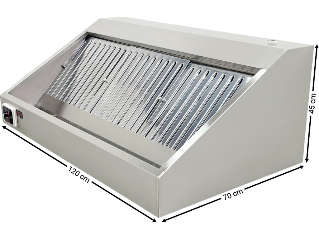 Nástěnná digestoř 1,2 x 0,7 m - s motorem, regulátorem a svítidlem