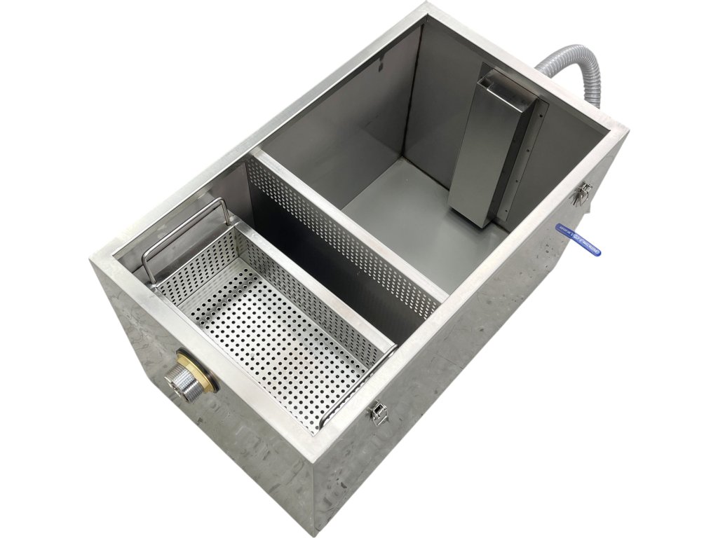Použití: Odlučování tuku a pevných částic z odpadní vody, vhodné pro profesionální kuchyně, restaurace a provozy s vyšší zátěží.