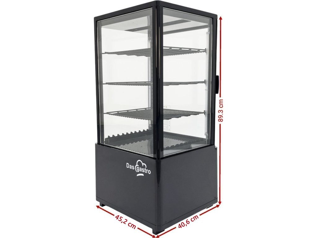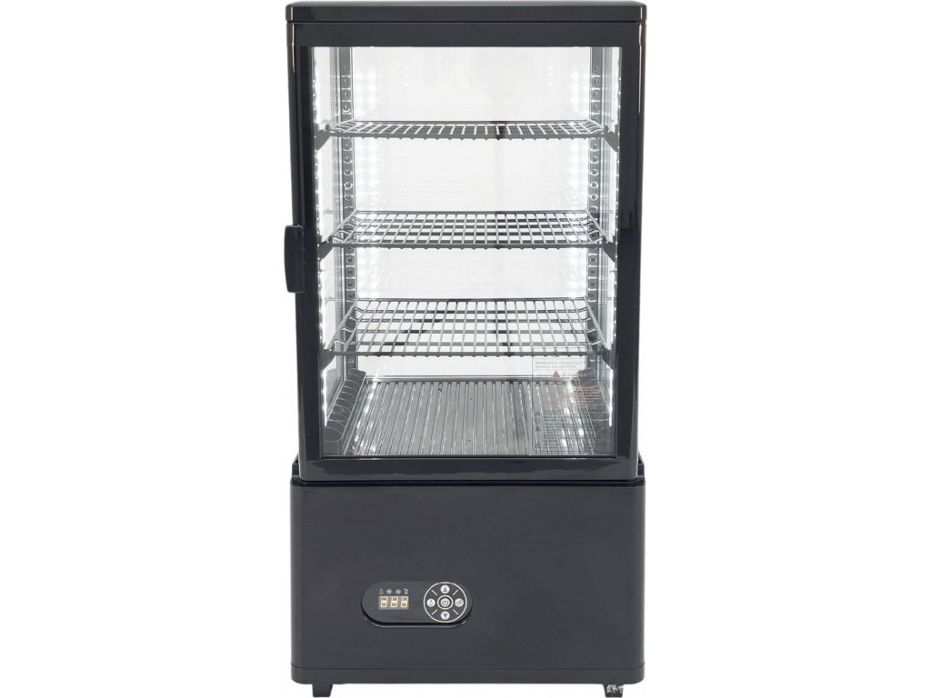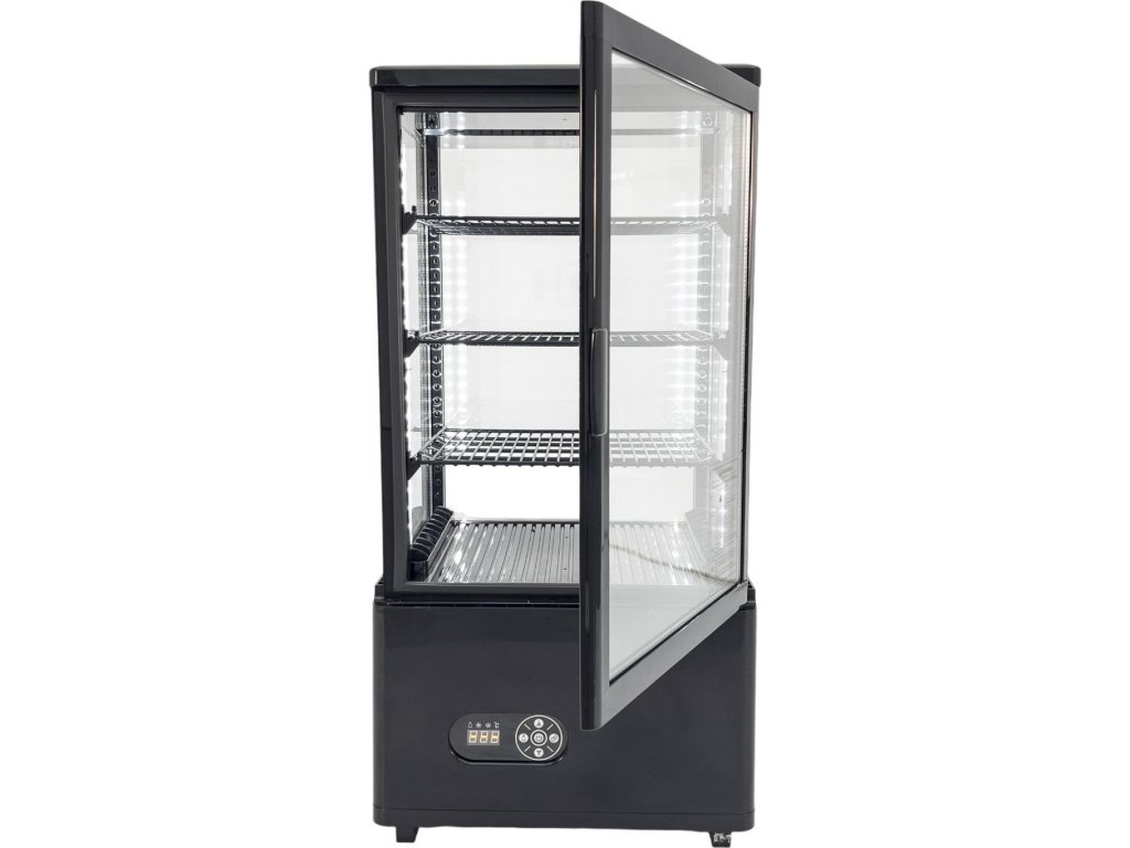 Tato chladící vitrína o kapacitě 68 litrů je ideálním řešením pro efektivní chlazení a atraktivní prezentaci vašich produktů. Vyrobena z vysoce kvalitního ABS plastu v elegantní černé barvě, vitrína zajišťuje spolehlivý výkon a moderní vzhled, který se hodí do jakéhokoli prostředí, ať už v restauracích, obchodech nebo kavárnách.