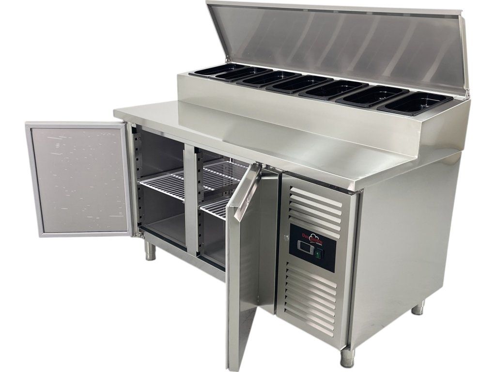 Profesionální chladicí stůl s pracovní plochou je ideálním řešením nejen pro pizzerie, ale také pro pekárny, cukrárny a další gastro provozy, kde je klíčová efektivní příprava a uchování surovin. Kombinuje praktický úložný prostor s robustní pracovní plochou a přesným chlazením.