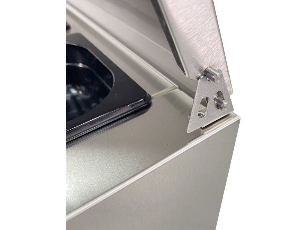 Horní plocha je připravena k osazení GN nádob – vejde se 5 ks GN 1/3 + 1 ks GN 1/2 (maximální hloubka 15 cm)