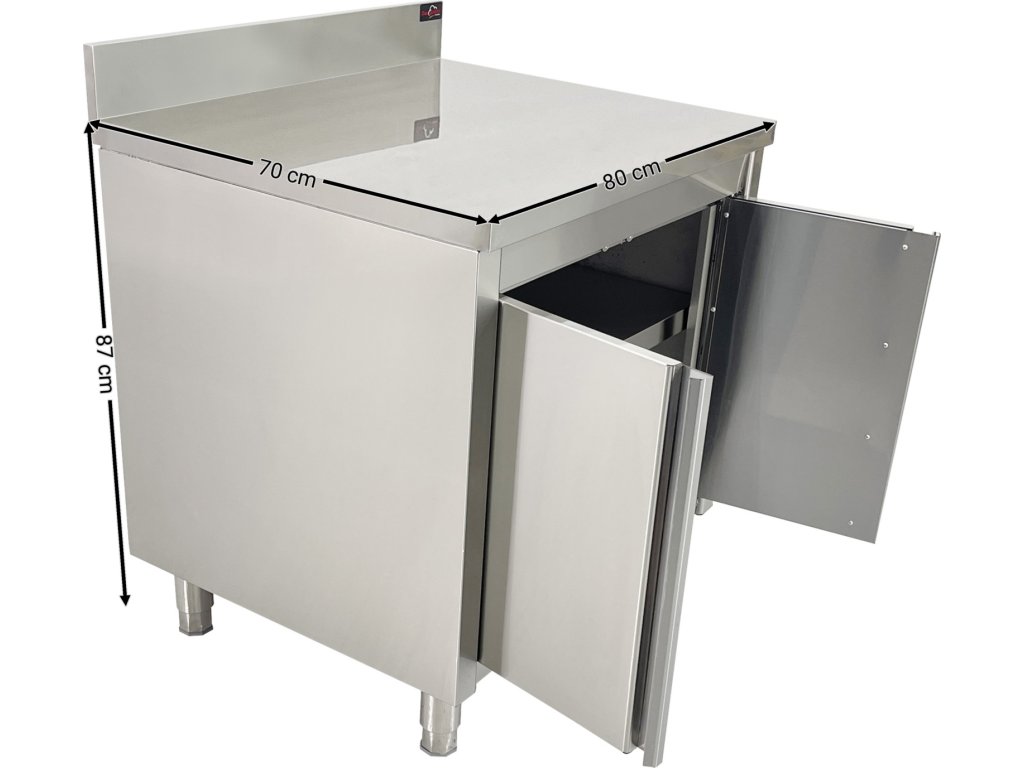 Pracovní skříň z nerezové oceli - 800 mm - s křídlovými dveřmi a zadním lemem