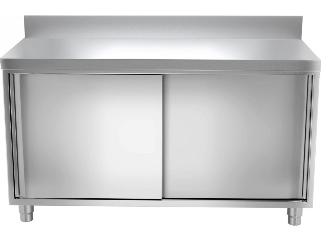 Pracovní skříňka z nerezové oceli - 1,6 m - se zadním lemem a posuvnými dveřmi