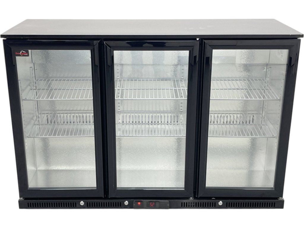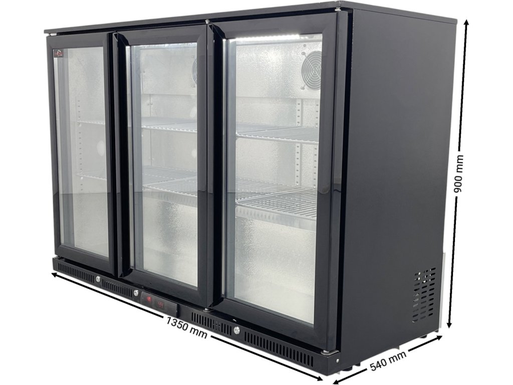 Barkühlschrank - 1350 x 540 x 900 mm, mit 3 Glastüren und 2 Einlegeböden - schwarz