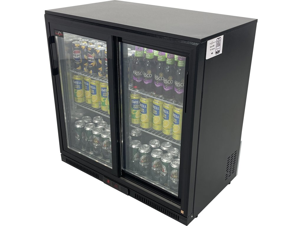 Barkühlschrank - 0,9 m - 190 l - mit 2 Glastüren und 2 Einlegeböden - Schwarz
