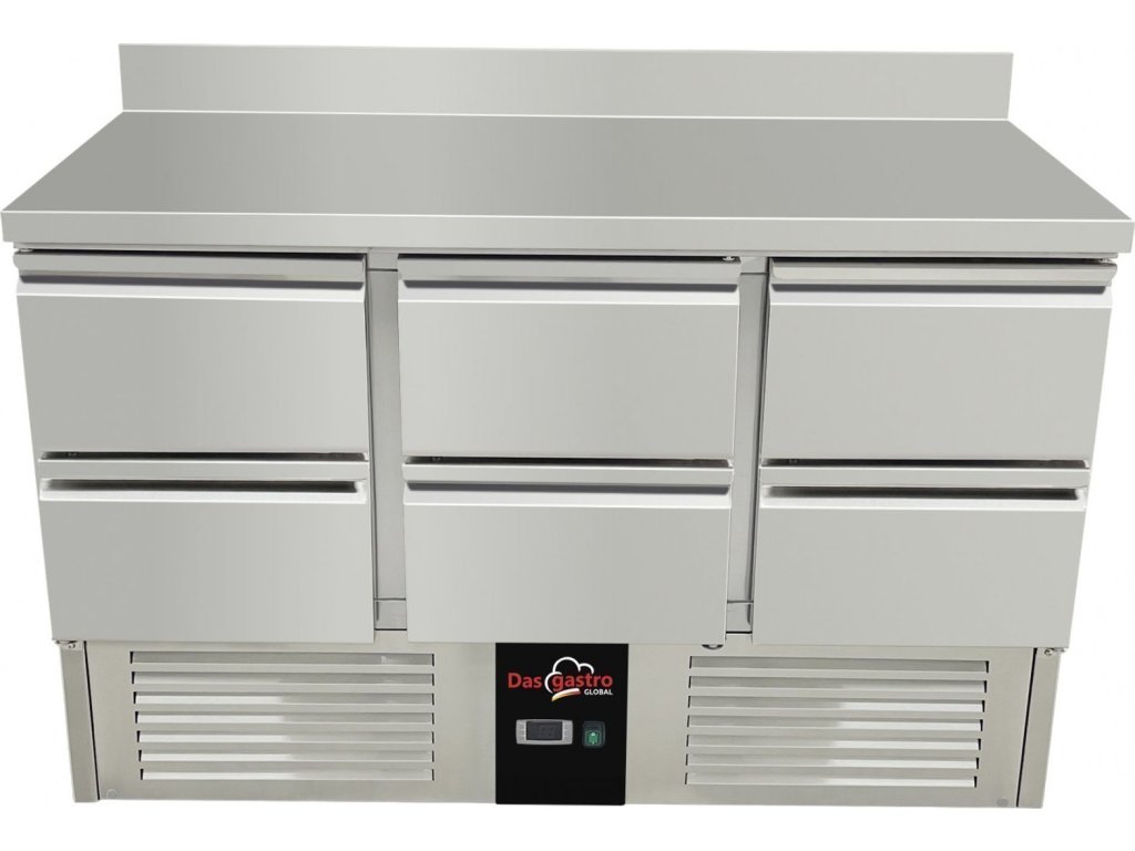Kühltisch / Vorbereitungstisch 1,37 m x 0,7 m - mit 6 Schubladen und Hinterkante