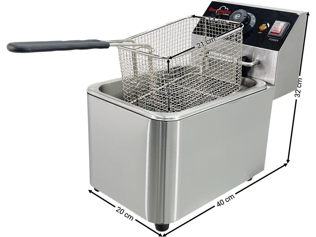 Die kompakte Elektrofritteuse DASEF-4L ist die ideale Lösung für kleinere Betriebe, Verkaufsstände, Buffets und Catering. Dank ihres einfachen Eintank-Designs ermöglicht sie die einfache und effiziente Zubereitung kleiner Portionen frittierter Speisen wie Pommes Frites, Kroketten oder Schnitzel.