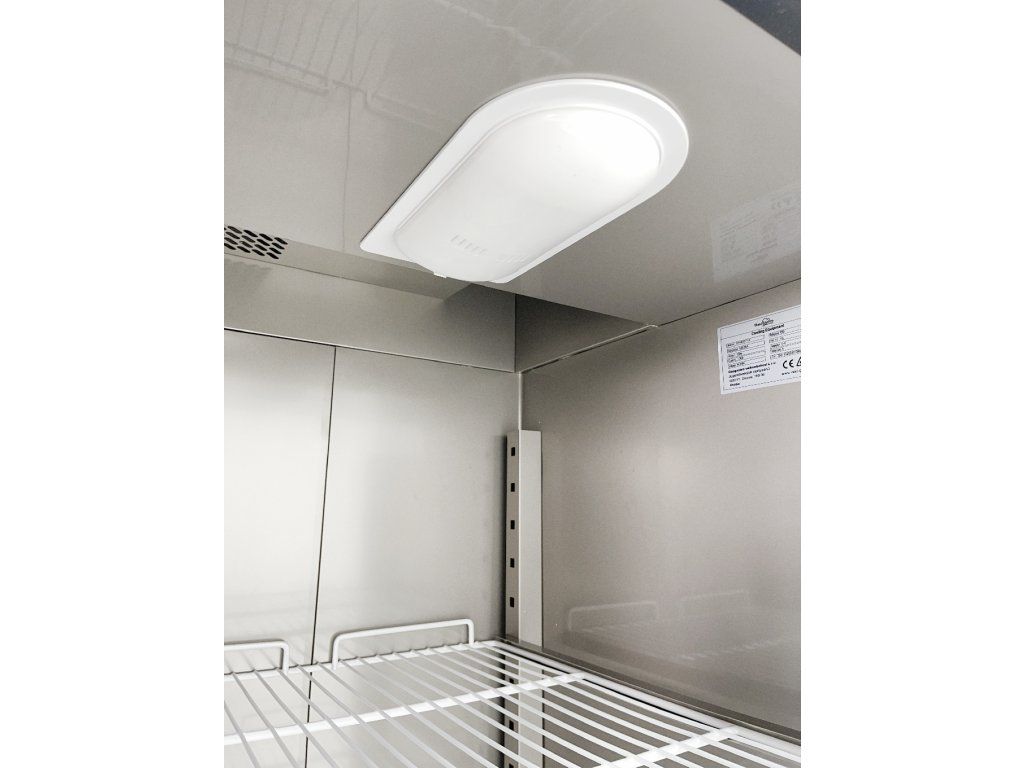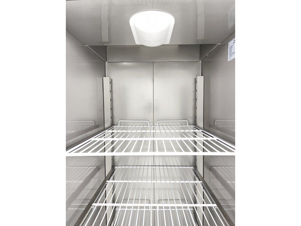 Bei der Entwicklung dieses Schranks standen Langlebigkeit, Hygiene und Betriebseffizienz im Vordergrund. Sowohl das Außen- als auch das Innengehäuse bestehen aus Edelstahl und gewährleisten so eine einfache Reinigung und hohe Haltbarkeit.