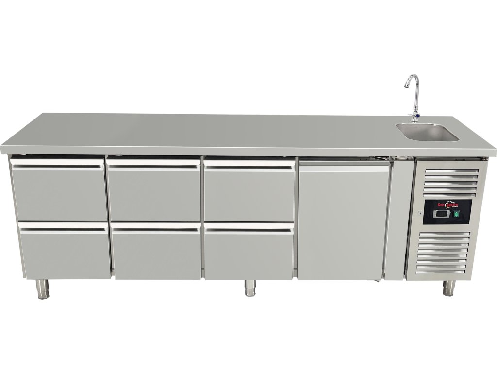 Gefriertisch mit Spüle - 6 Schubladen und Tür rechts