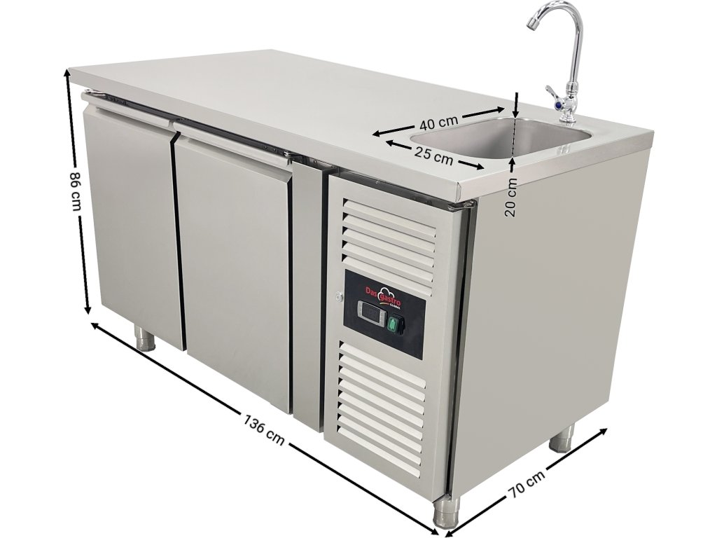 Kompakter und leistungsstarker Gefriertisch mit integrierter Spüle – ideal für kleinere Gastronomiebetriebe