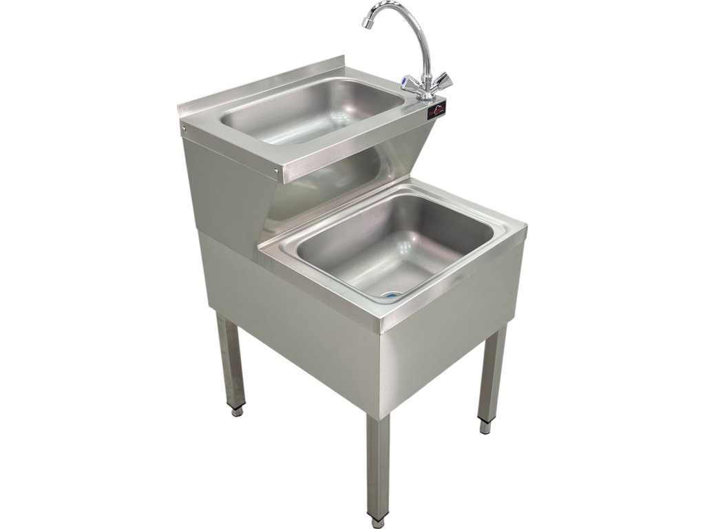 1 Spüle und 1 integriertes Waschbecken mit Spritzschutz
