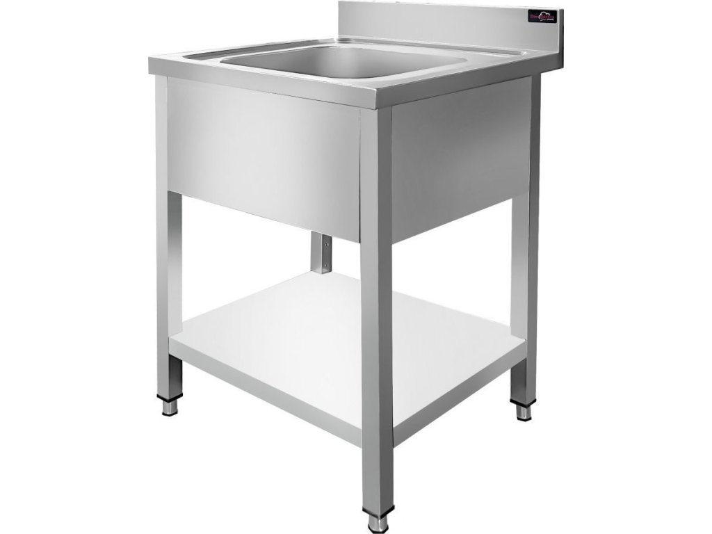 Edelstahlspüle mit unterer Ablage 0,60 m – 1 Spüle, Tiefe 60 cm