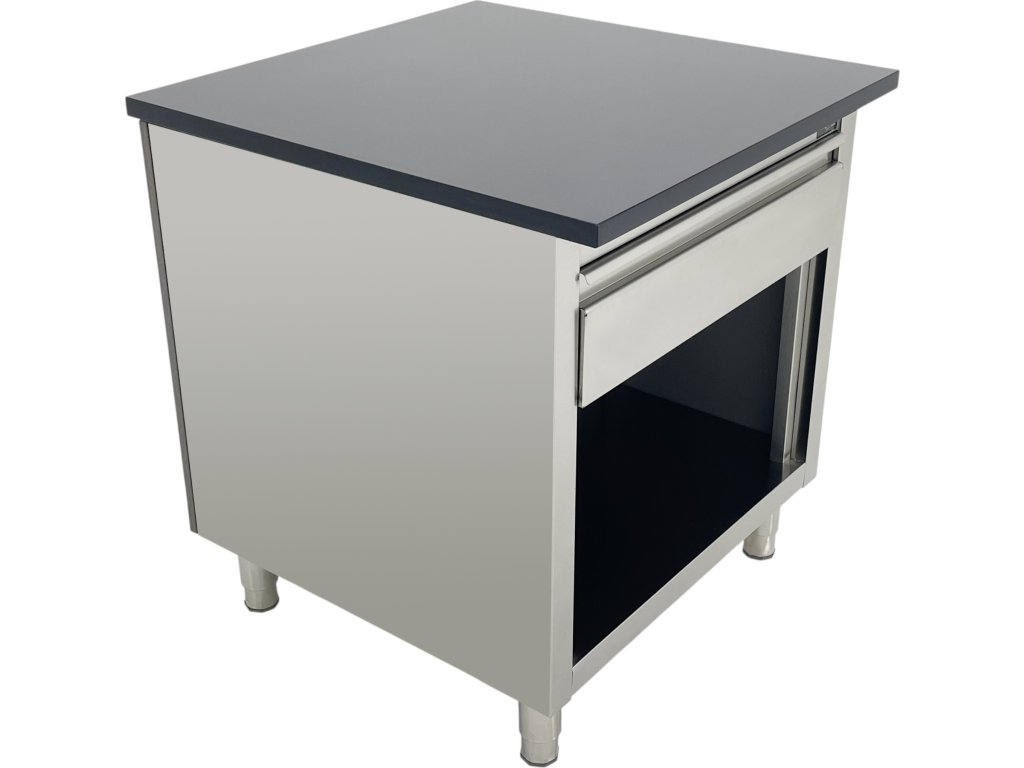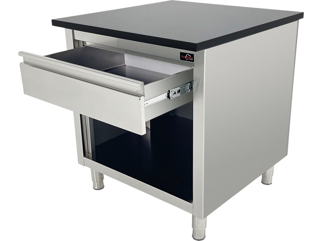 Eine repräsentative Kasse, die speziell für moderne Gastronomiebetriebe und Geschäfte entwickelt wurde. Mit ihrem Design aus schwarzem Marmor und grauen Holzelementen fügt sie sich nahtlos in die Designlinie der Kühl- und Bedientheken im Onlineshop ein und ermöglicht so die Schaffung eines einheitlichen, professionellen und optisch harmonischen Raums.