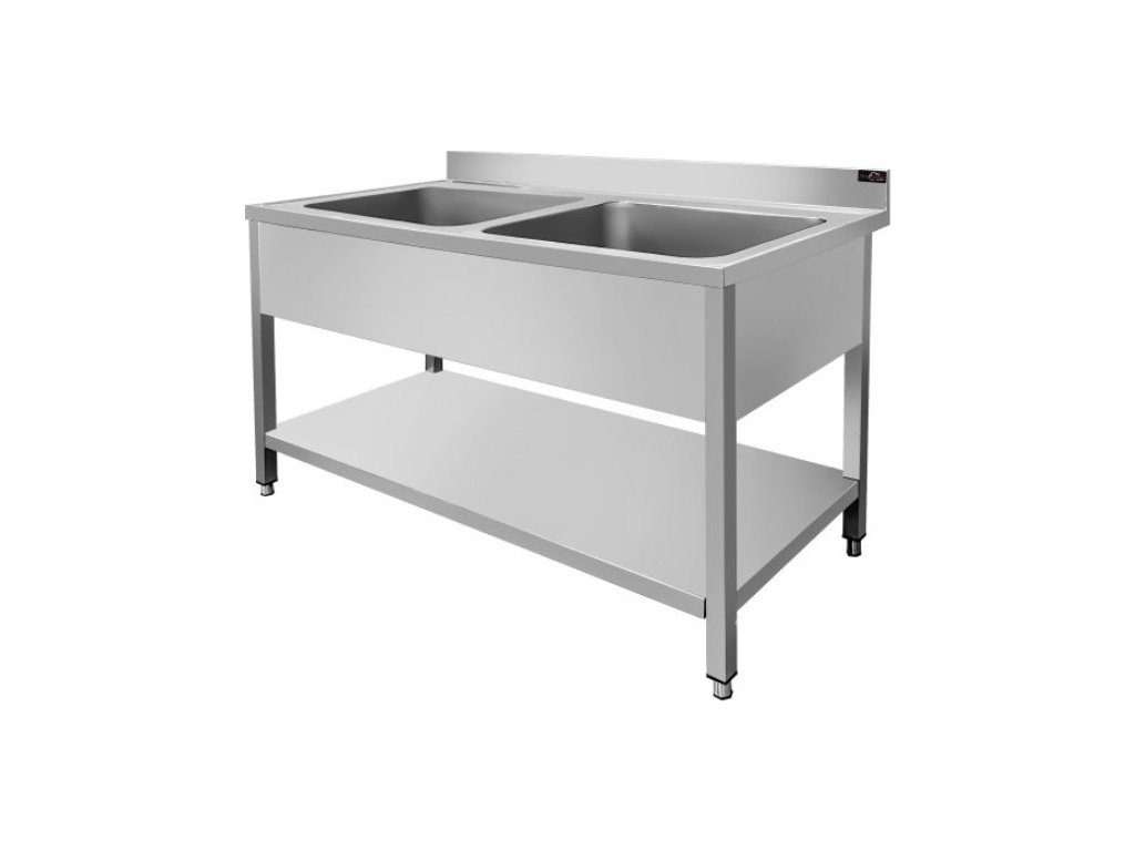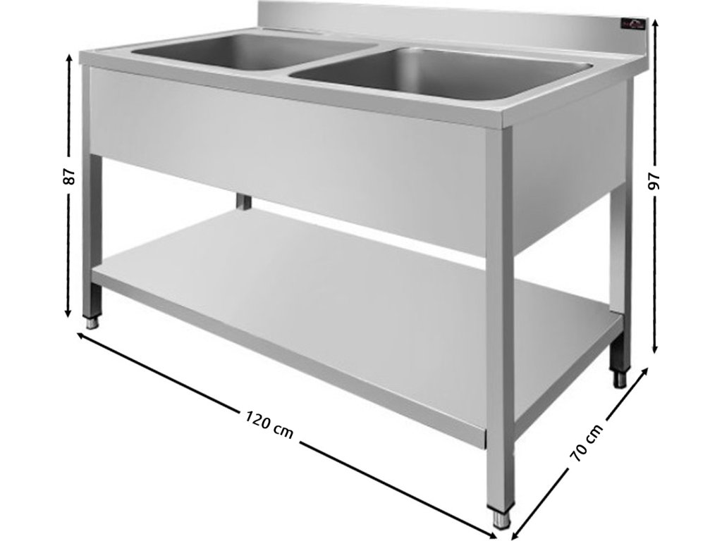 Stainless steel sink with 1.2 m shelf, 2 basins in the middle, depth 70 cm