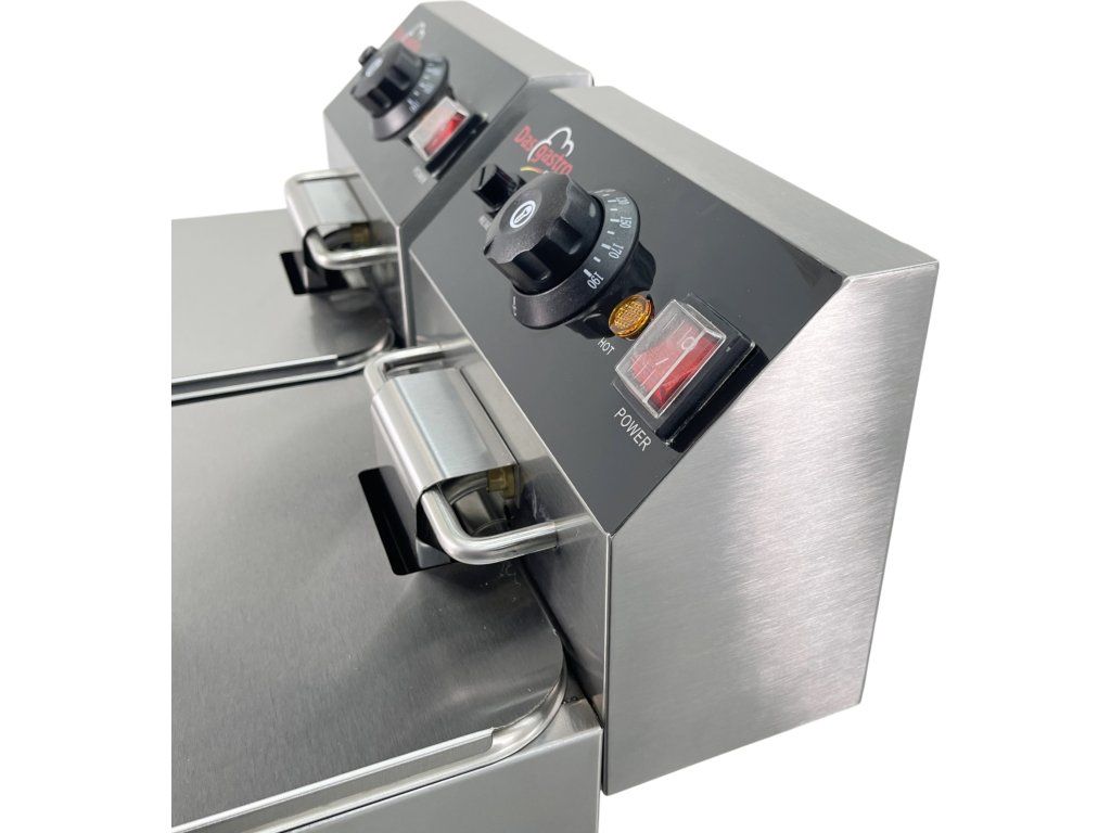 The compact and powerful DASEF-4L-2 electric fryer with two tanks is an ideal solution for smaller gastro operations, stalls, food trucks or additional operations in restaurants. Thanks to two independent tanks, it is possible to prepare different dishes at the same time without mixing flavors.
