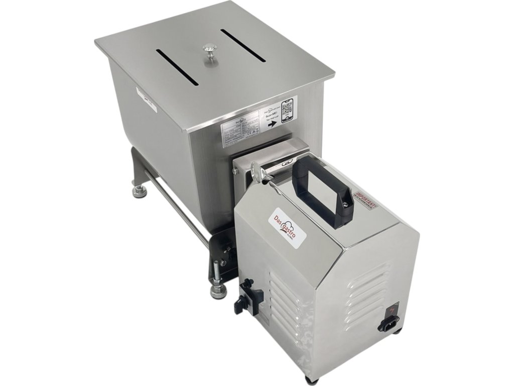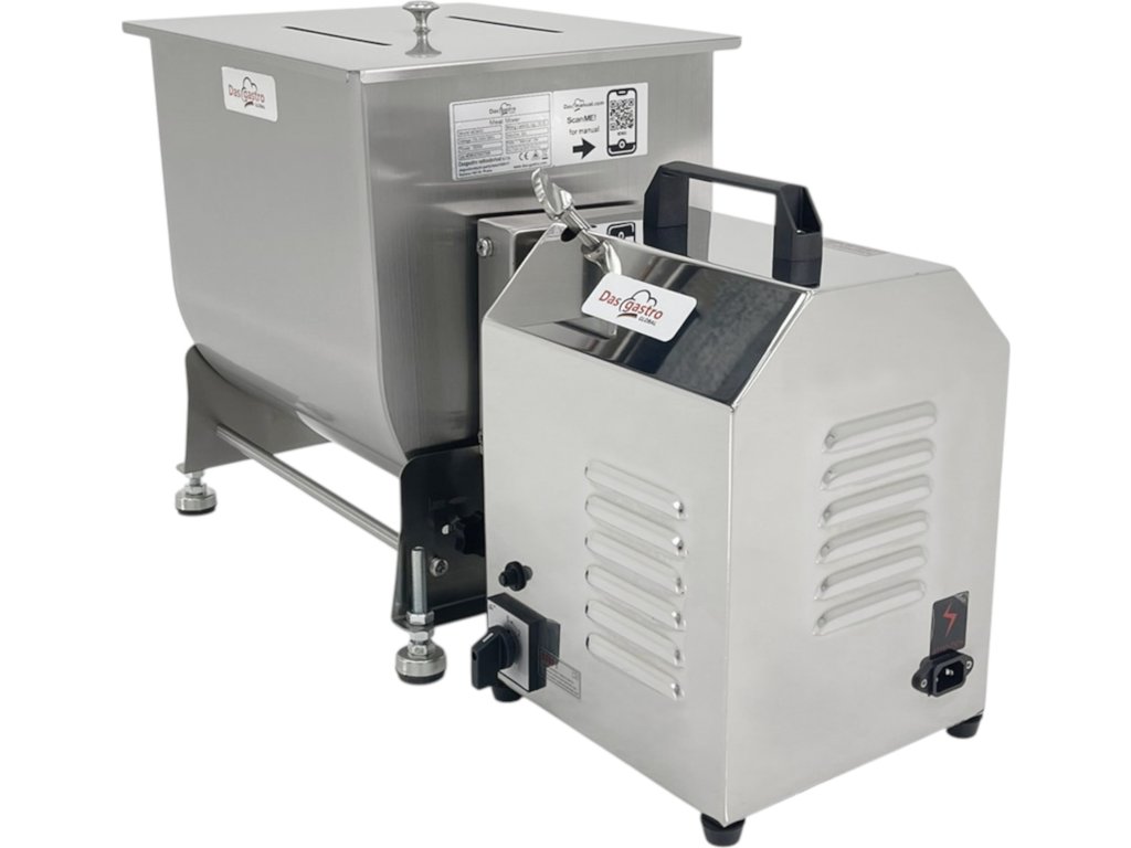 The professional electric meat mixer MDM30 is designed for fast, even and hygienic mixing of minced meat, spices and other ingredients. Thanks to its robust body and tilting container, it ensures easy handling, efficient processing of raw materials and maximum comfort during cleaning. This model is ideal for butchers and sausage shops, meat workshops and gastronomic production facilities that require performance, reliability and precise results.