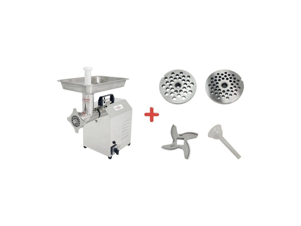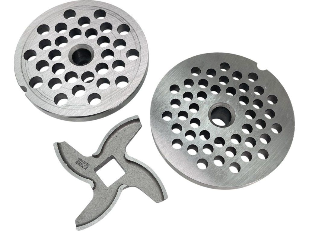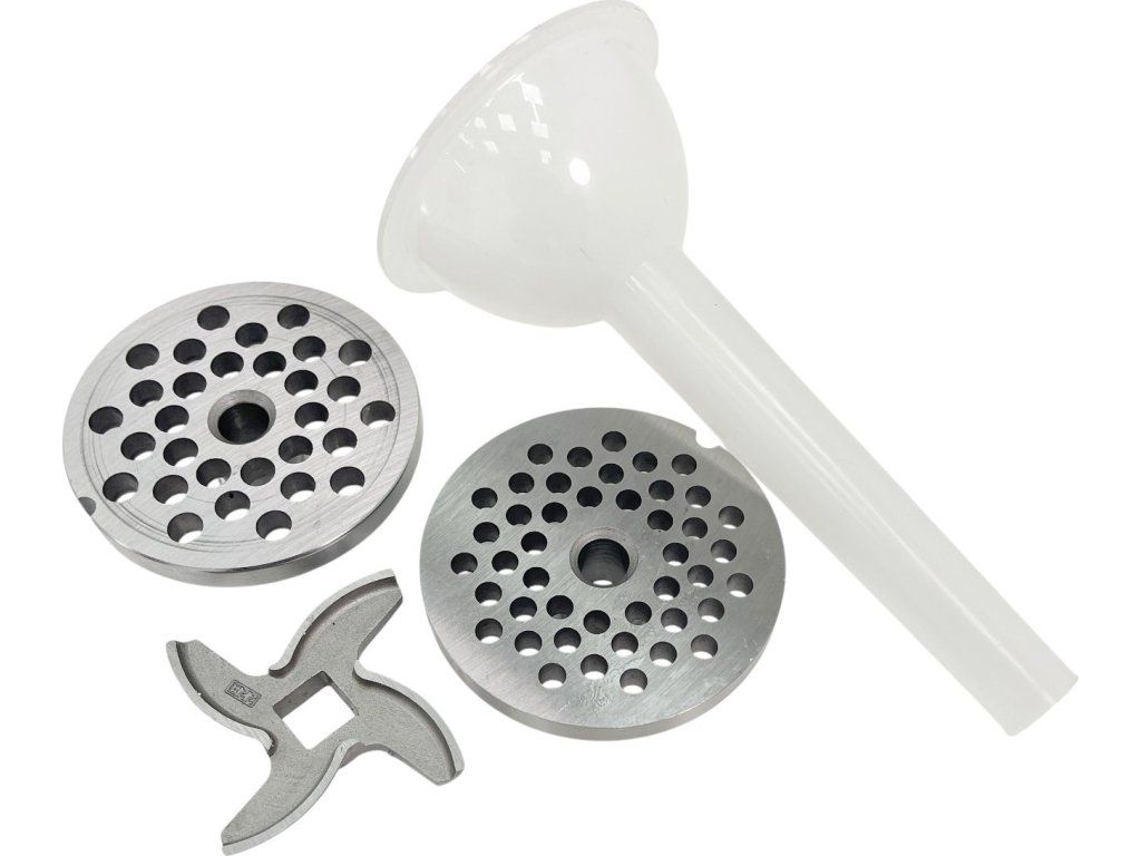 The package includes: two grinding discs (Ø 6 mm and Ø 8 mm), a knife, a plastic attachment for filling sausages (nozzle Ø 19 mm) - all important accessories immediately ready for use.