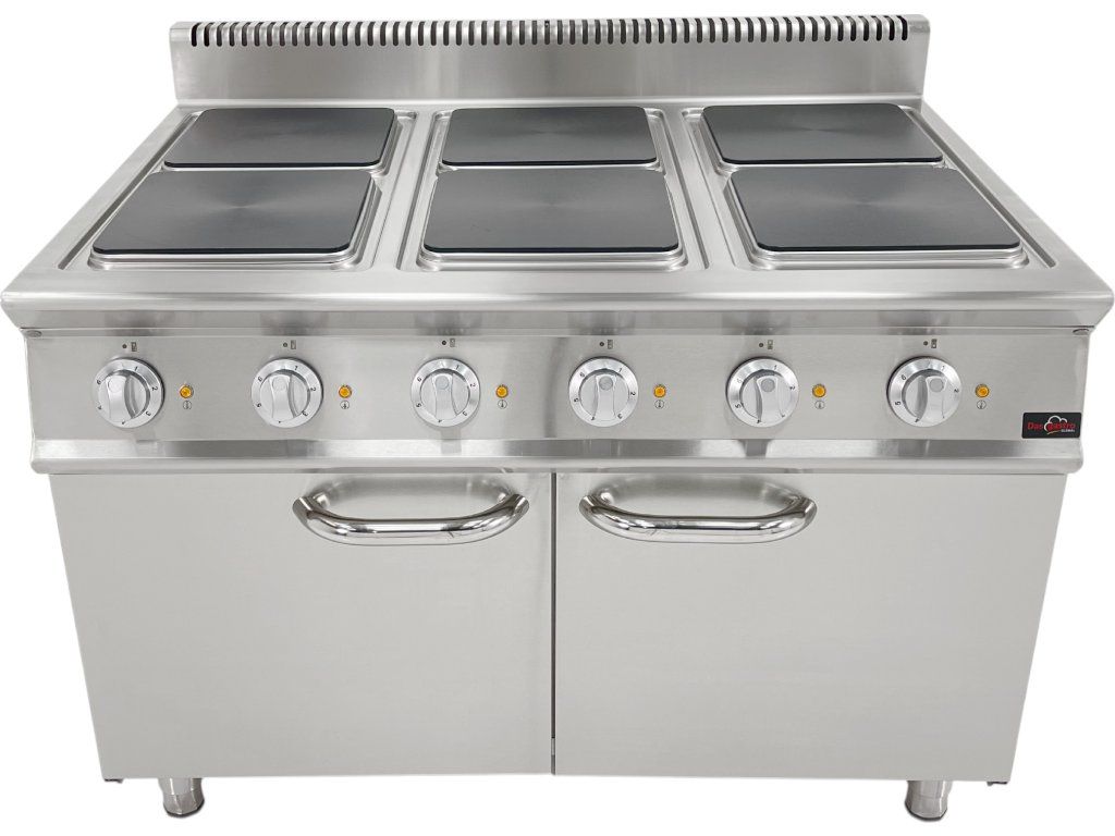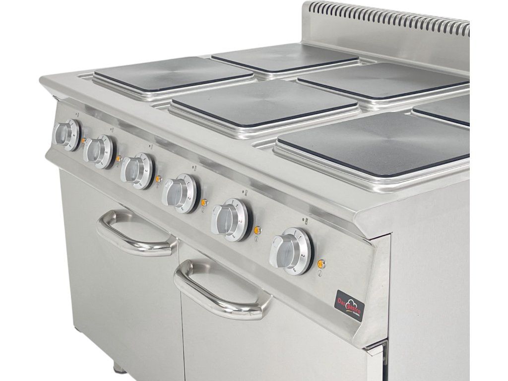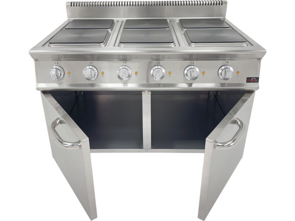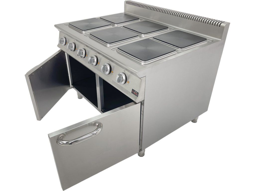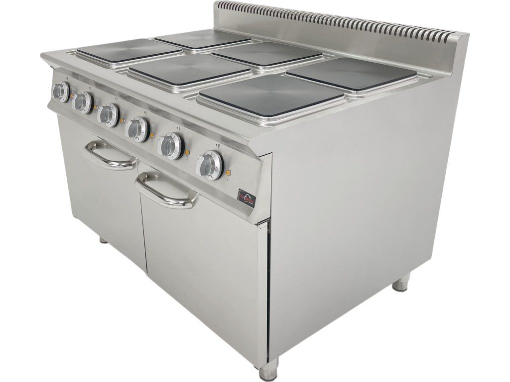 6 independent electric square hotplates – each with its own switch and power regulation.