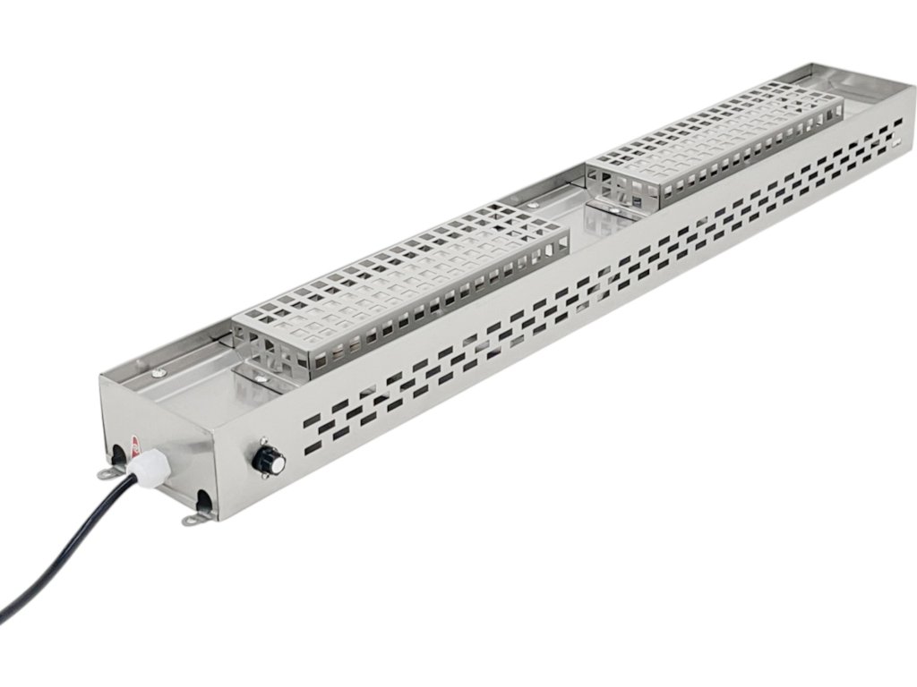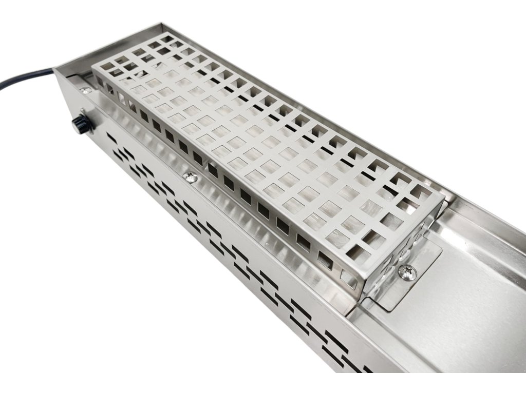 Univerzální ohřevný modul (Comber bridge) se 2 zářiči pro rychlé a rovnoměrné dohřívání. Lze montovat pod police, do nástěnných jednotek i jako závěsný tepelný most. Ochranná mřížka z nerezu, zapojení do 230 V, výkon 700 W, ohřev až na 60 °C.