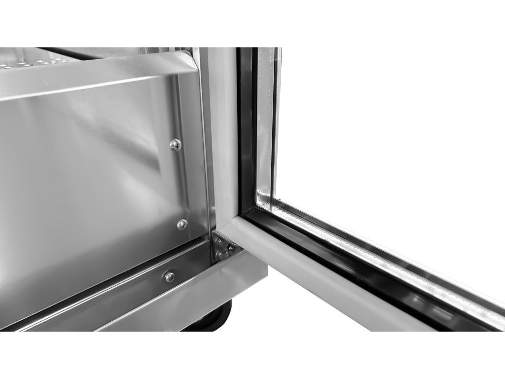 - Hinged glass door – allows easy monitoring of the rising process and convenient access to the baking sheets