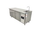 Freezer table with sink with 3 doors and 2 drawers middle left