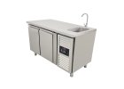 Freezer table with sink, 2 doors and 2 drawers on the left