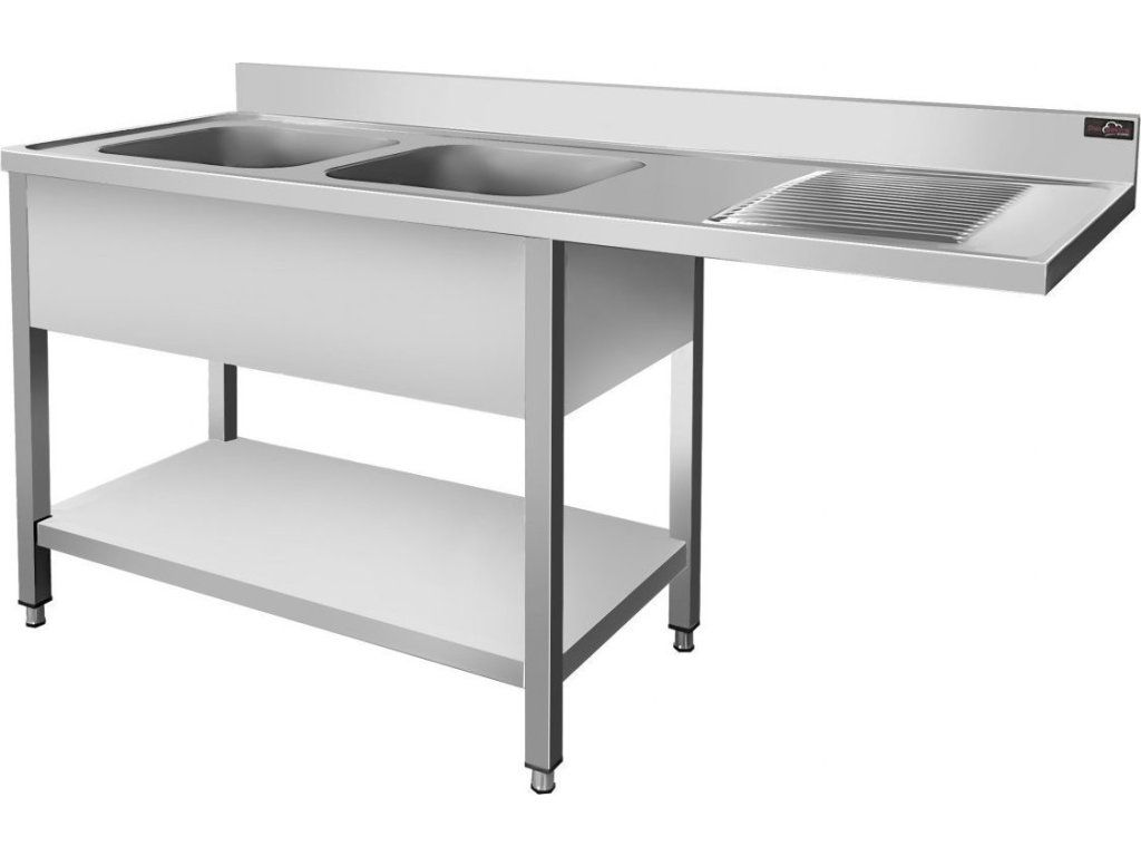 Stainless steel sink for dishwasher - 1.6 m, 2 basins on the left, depth 60 cm