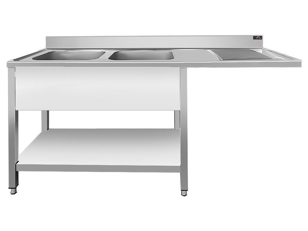 Stainless steel sink for dishwasher - 1.6 m, 2 basins on the left, depth 70 cm