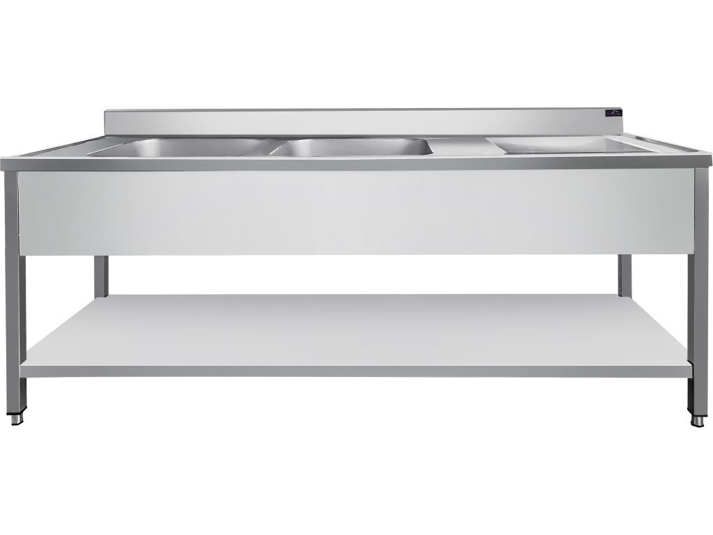 The PREMIUM stainless steel sink table with two sinks is designed for professional gastro operations, where hygiene, durability and comfortable work are key. Its stable construction, easy maintenance and practical lower shelf make it an ideal choice for gastro kitchens, preparation rooms and back rooms.