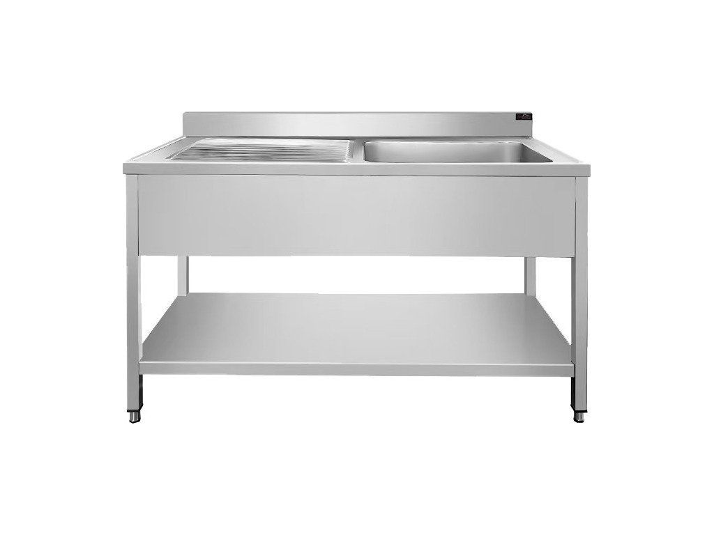 PREMIUM stainless steel sink with one sink on the right, lower shelf and 1.4 m rear edge