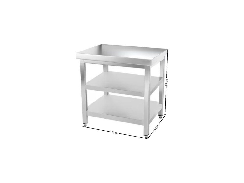 PREMIUM stainless steel workbench with two shelves without back edge 0.7 m