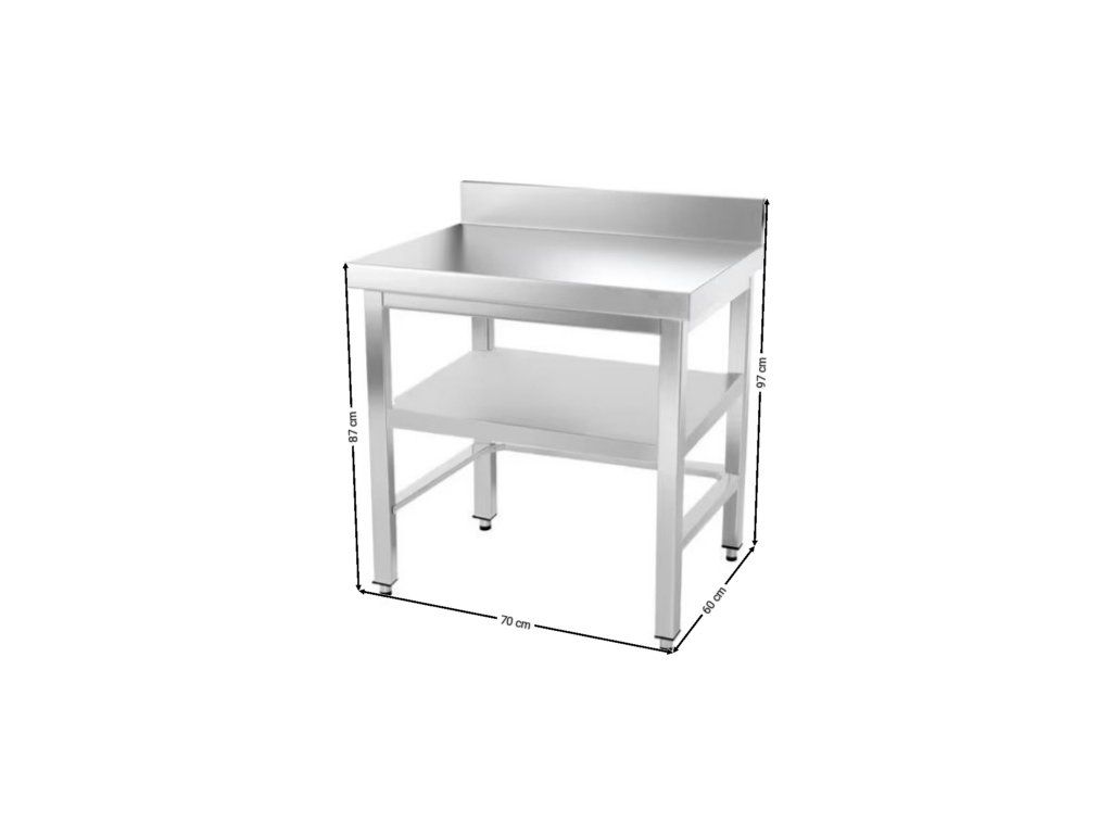 PREMIUM stainless steel workbench with bottom shelf, back edge and 0.7 m upright