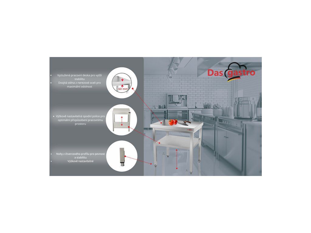 Stainless steel workbench for professional operations. Stable construction, easy maintenance and a practical bottom shelf make it an ideal choice for gastro kitchens, preparation rooms and back offices.