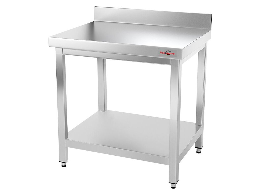 Stainless steel work table with bottom shelf and back edge - 0.7 x 0.6 m