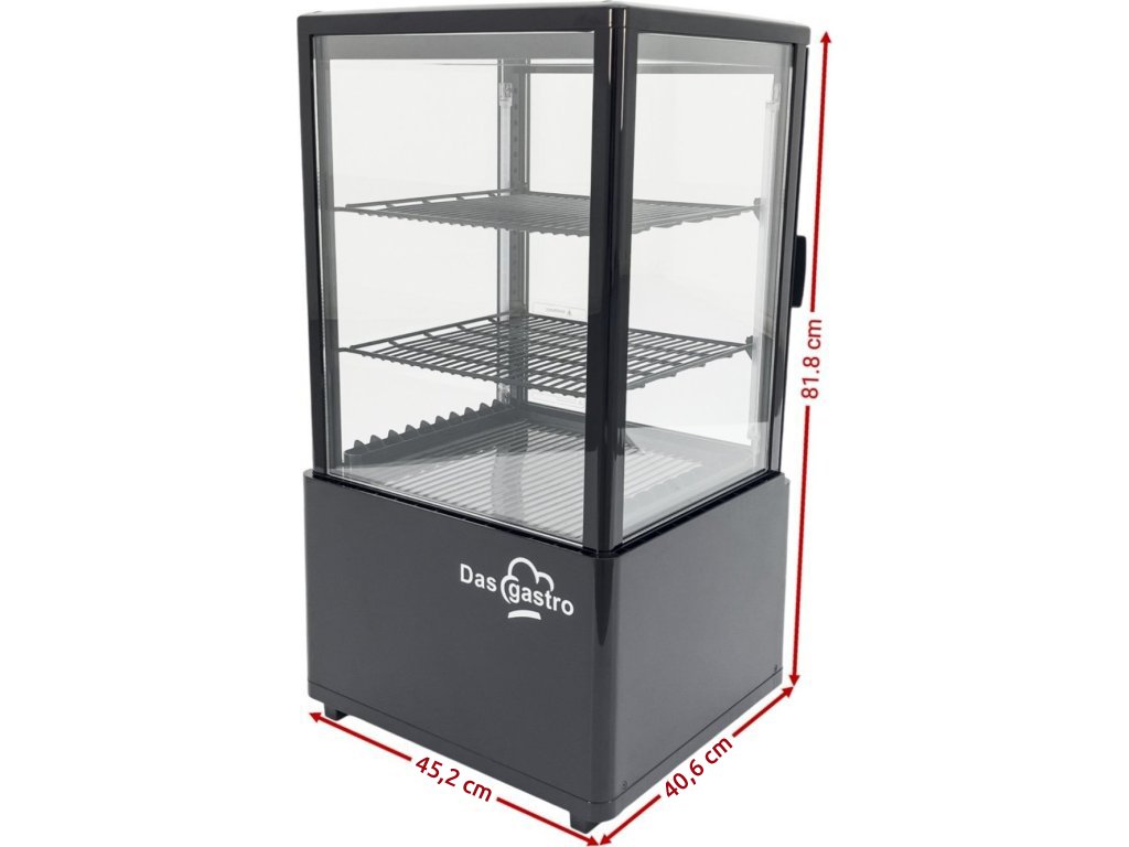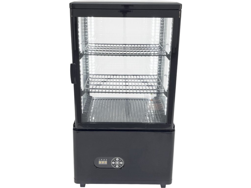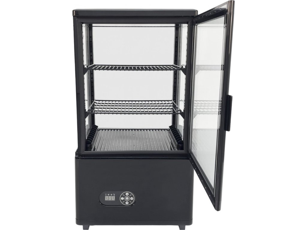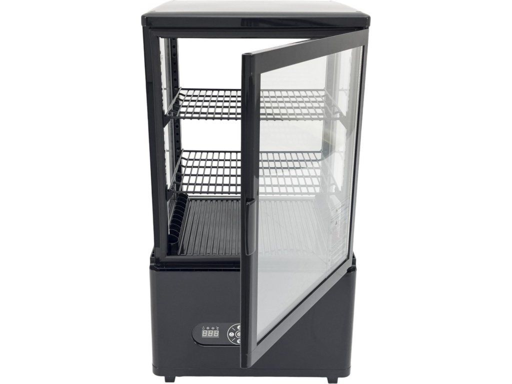 This 58 litre refrigerated display case is the ideal solution for efficient cooling and attractive presentation of your products. The display case is made of high-quality ABS plastic, which ensures its durability and long life, while the elegant black colour makes it suitable for any environment.