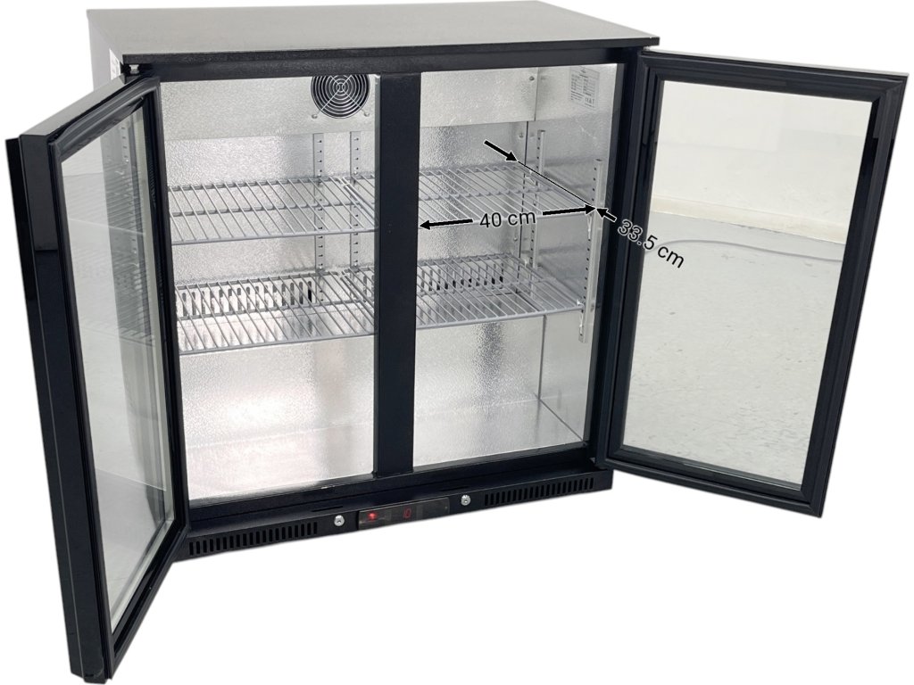 Lodówka barowa - 0,9 m - 190 l - z 2 drzwiami szklanymi i 2 półkami - czarna